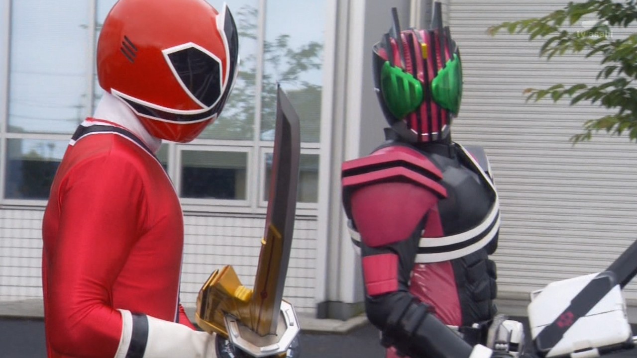 そりゃあね、土曜の深夜にあんなテンション上がるロボアニメ観て 翌日にはスーパー戦隊&仮面ライダーの1時間コラボですよ 長くなるのも仕方がない(お まさに祭の場所はここか状態! >侍戦隊シンケンジャー もうね完全にディケイドの話と繋がってやがるw ( ´Д⊂ヽ 特撮ファンやってきて良かった… 先々週wからイカちゃん求めて海東を追い続ける寿司屋 今回不参加かと思いきや、しっかりロボ戦だけ参加して即退場…忙し過ぎw 源ちゃんがんばれw まあ本編のエピソードは千明回で非常にいい話でした やっぱ千明は成長型主人公タイプだなボウケンブラック的な この果てしなく続く サムライ坂を(ry ええ、かなりいい話でだったんですが… !? 殿ー!後ろ後ろw くそう鳴滝!むしろお前のせいでシンケンの世界が破壊されてしまったw ディケイドが気になって殿執事とか全然気にならない 嘘ですw 殿執事も楽しみ過ぎるw というわけで話はディケイドへ… >仮面ライダーディケイド 鳴滝の巧みな?人心掌握術により殿VS士かと思いきや いきなり再登場してネタばらしする鳴滝… アンタテキジャナカッタノカ? ナニガシタインディスカ!>(0w0;) 先週アヤカシにフルボッコにされて治療中の海東w ついに寿司屋に発見されるもイカちゃん返せの言葉に対し 「ヤダ!」 (# 0M0)<ナニイテンダ! カエシテヤレヨ! そしてここからさらにカオスにw 殿ーーーーー!!! 水は ほんとに うざいな(誉め言葉 紆余曲折あってアヤカシディエンドとのバトル開始 !? カッコイイだろ…ユウスケなんだぜこれ… 正直、劇場版までクウガのバトルが観れると思ってませんでしたw 頑張れ いや頑張ってくれユウスケw マジでw 真打登場! この2人カッコよすぎだろw 今回のNG:仮面ライダー剣 この後殿に捕まり弾よけにされたり(なんというミートシールド コンプリ&キングフォームに瞬殺されたり FFRで烈火大斬刀とトレードされたりと散々な目にw アンダドオデハナガマジャナガッダノガ!?>(0w0;) ( 火)<知らん! 仮面ライダー剣は犠牲になったのだ! ただこのシチュエーションをやりたいだけの為にw そしてシンケンジャーの世界を後にした士達の前に現れるのは…そうついに! てつをの世界キタコレ! しかも最初からロボ、バイオもでるというクライマックスぷり なんかブラックサンもでるみたいで来週も祭決定だなヒャッハー"ヽ(´ー`)ノ" 余談ですが予告の士のコスプレは 秋葉原や日本橋でよく見かけるような気がしますが アニメオタクじゃなく霞のジョーだと思うのでw なんでも力ちゃん出演依頼を断ったとか… うーん残念無念 もう一度てつをさんと力ちゃんのコンビを見てみたかった なんか最近妙に忙しくて色々と更新してないぁ